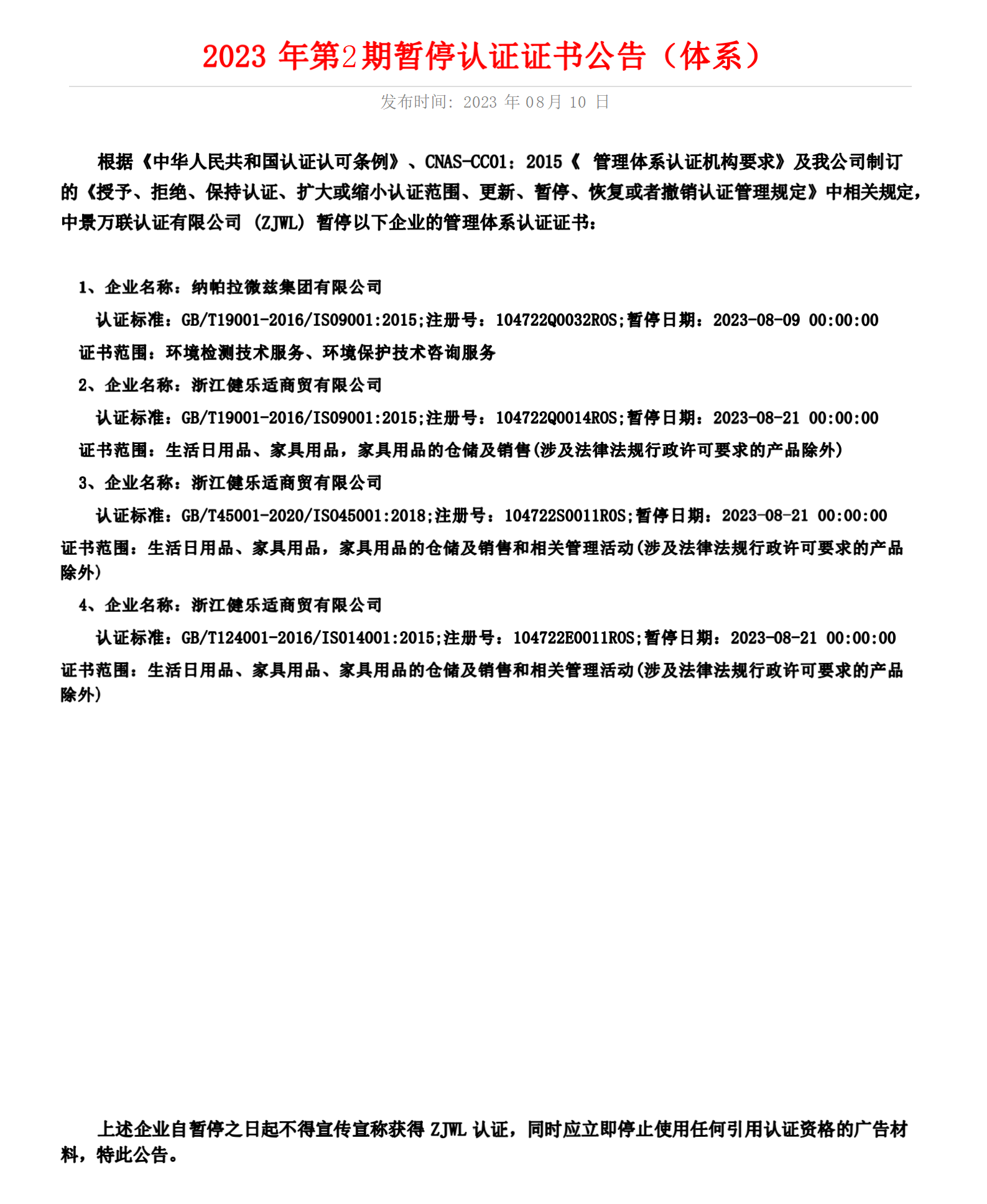 > 通知公告 > 2023 年第 2 期暂停认证证书公告